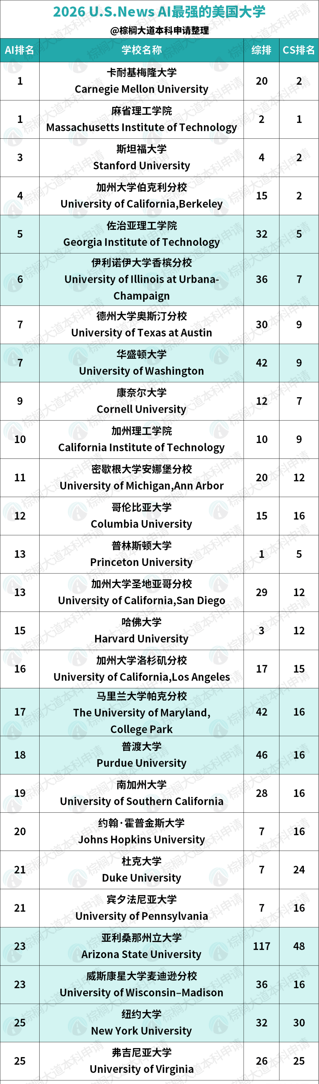 棕榈大道本科申请收成多枚顶尖名校CS相关专业登科,莱斯大学:2025年5月,普渡大学:文理学院和科学学院都供给AI专业,课程设想:机械进修、算法数据阐发、高级机械人等。中美的AI财产都正正在敏捷成长。跳至半空中,新的学位,